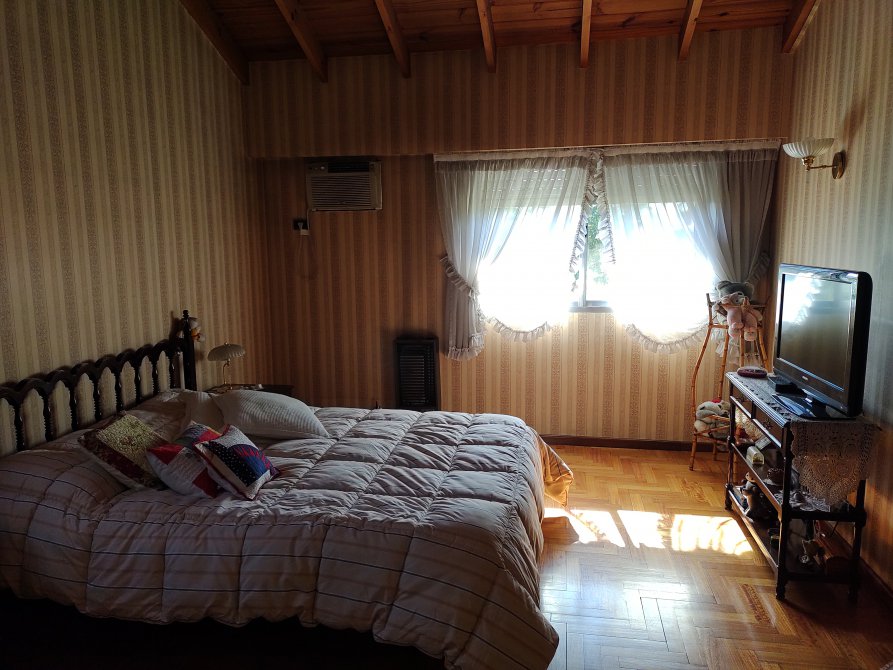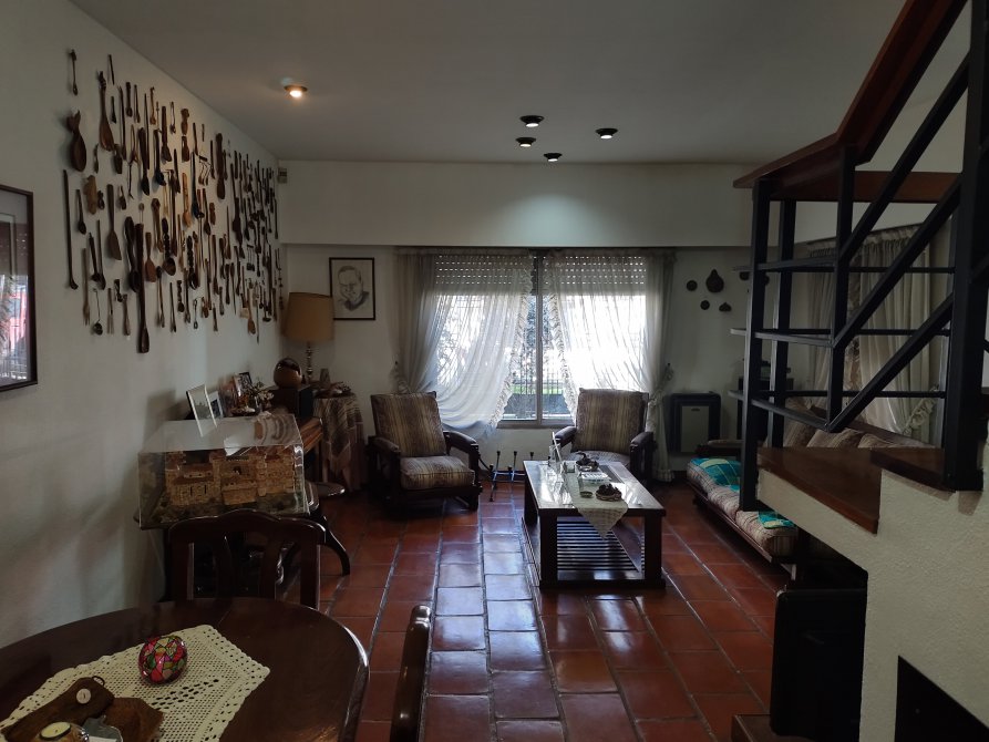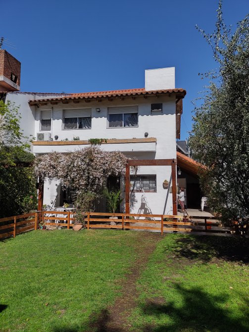 Amplio Estar Comedor principal con hogar. Cocina Comedor diario totalmente amoblado; Baño completo. En planta alta 3 amplios Dormitorios, el principal con vestidor y baño completo en suite. Cochera pasante para varios autos; parque libre y cuarto de trabajo con baño al fondo del lote. Medidas del terreno 10,50x32,40 mts.