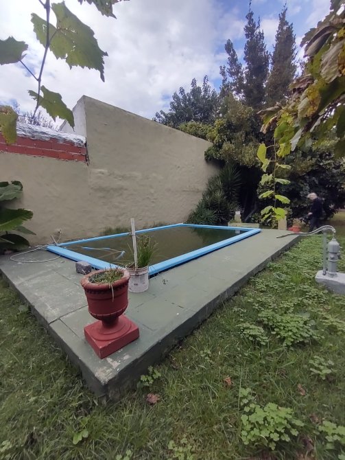 Entrada vehicular varios autos. Galería semicubierta, pileta con vereda perimetral y al fondo construcción a refaccionar con cocina y baño, para quincho o departamento independiente.